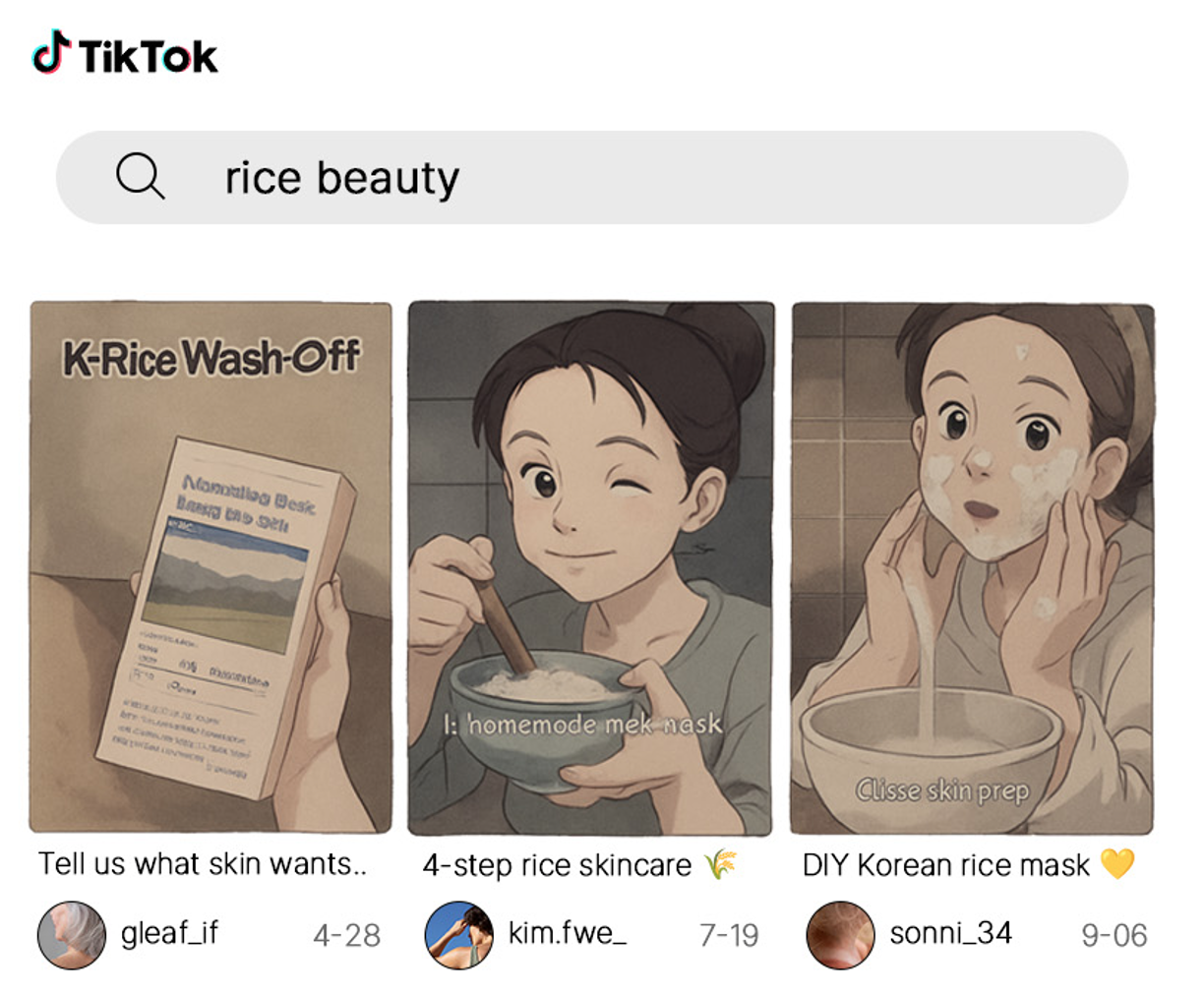실제로 쌀을 원료로 한 스킨 케어가 글로벌 트렌드로 부상하면서, 직접 쌀을 갈아서 팩을 만드는 틱톡-쇼츠 영상들이 핫한 키워드로 떠오르고 있습니다.'Persistence Market Research', 'The Business Research Company' 등의 통계 사이트에서도 쌀을 기반으로 한 스킨케어 제품들의 시장 규모나 검색량이 꾸준히 증가하고 있다고 해요 📈👀